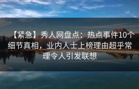 【紧急】秀人网盘点:热点事件10个细节真相,业内人士上榜理由超乎常理令人引发联想