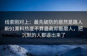 线索刚对上:最先破防的居然是路人新91黑料热度不算最高却最磨人,把沉默的人都逼出来了