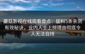 蘑菇影视在线观看盘点:猛料5条亲测有效秘诀,业内人士上榜理由彻底令人无法自持