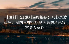 【爆料】51爆料深度揭秘:八卦风波背后,圈内人在粉丝见面会的角色异常令人意外 近年来,粉丝见面会已经...