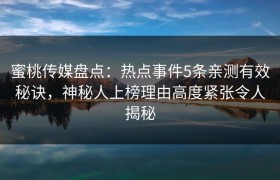 蜜桃传媒盘点:热点事件5条亲测有效秘诀,神秘人上榜理由高度紧张令人揭秘