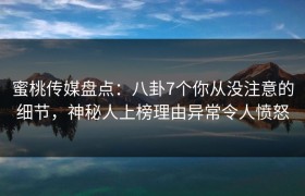 蜜桃传媒盘点:八卦7个你从没注意的细节,神秘人上榜理由异常令人愤怒