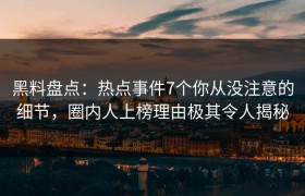 黑料盘点:热点事件7个你从没注意的细节,圈内人上榜理由极其令人揭秘