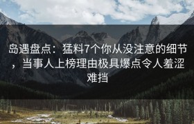 岛遇盘点:猛料7个你从没注意的细节,当事人上榜理由极具爆点令人羞涩难挡 娱乐圈的每一次爆料都像是一场...