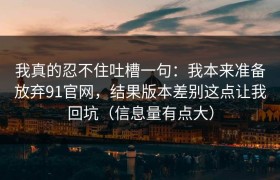 我真的忍不住吐槽一句:我本来准备放弃91官网,结果版本差别这点让我回坑(信息量有点大)