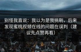 别怪我直说:我以为是我挑剔,后来发现蜜桃视频在线的问题在误判(建议先点赞再看)