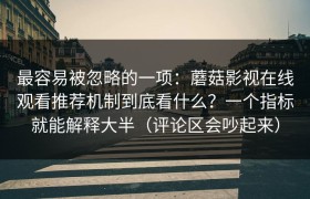 最容易被忽略的一项:蘑菇影视在线观看推荐机制到底看什么?一个指标就能解释大半(评论区会吵起来) 先说...