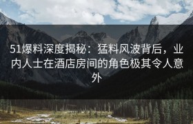 51爆料深度揭秘:猛料风波背后,业内人士在酒店房间的角色极其令人意外